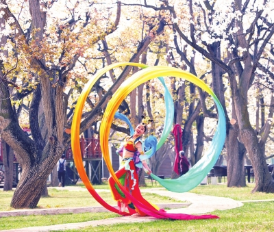 在百年梨樹(shù)下翩翩起舞的敦煌飛天“仙女” 張建平 攝