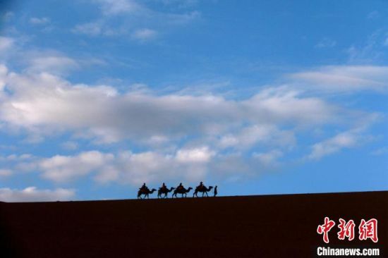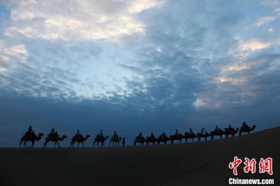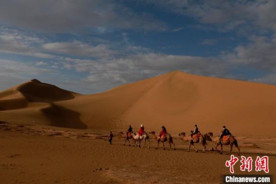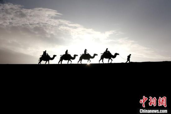 圖為敦煌大漠晨光引客“畫中游”?!垥粤?nbsp;攝
