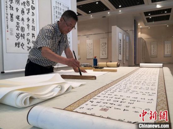 中新網(wǎng)蘭州9月22日電 (馮志軍 高瑩 閆姣)30多年前,因參與發(fā)現(xiàn)位于甘肅河西走廊大漠戈壁“深閨”中的懸泉置遺址,現(xiàn)場出土大量珍貴的簡牘,令現(xiàn)任敦煌市文化館美術(shù)室主任、敦煌市美術(shù)館展覽部主任朱群魂牽夢繞了很多年。而此后,當(dāng)時出土簡牘上的漢簡書體,成為他研究、傳承和弘揚(yáng)的事業(yè)。
