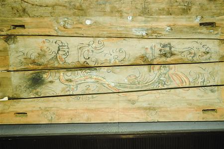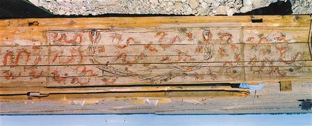 2002年新城毛莊子魏晉墓出土女棺伏羲女媧圖棺板畫(局部)。