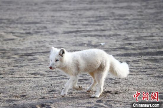 小白狐“打卡”甘肅敦煌鳴沙山月牙泉景區(qū)