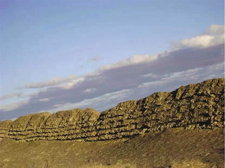 花海漢長(zhǎng)城遺址位于玉門(mén)市花海鎮(zhèn)西泉村頭墩西側(cè)至二墩東側(cè),西起三墩,東至花海頭墩,全長(zhǎng)約3.5公里。長(zhǎng)城基寬約2.4米,用沙石、紅柳分層夯筑,最高部分保存有紅柳7層,是河西走廊漢代長(zhǎng)城遺址中保存較完好的地段之一。(蘭州日?qǐng)?bào)社全媒體記者 王萬(wàn)盈 高慧霞 文/圖)