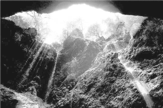 天井峰是整座天井峽的最高點(diǎn)。距天井峰不遠(yuǎn)處,有一股噴涌而下的泉水飛流直下,正好激濺在一塊奇石上,日積月累,石上竟沖刻成一個(gè)融隸、篆、草為一體的天然“幽”字,這塊巨石也就被稱(chēng)為“幽”字石,因此天井峽又被稱(chēng)為“天井幽谷”。