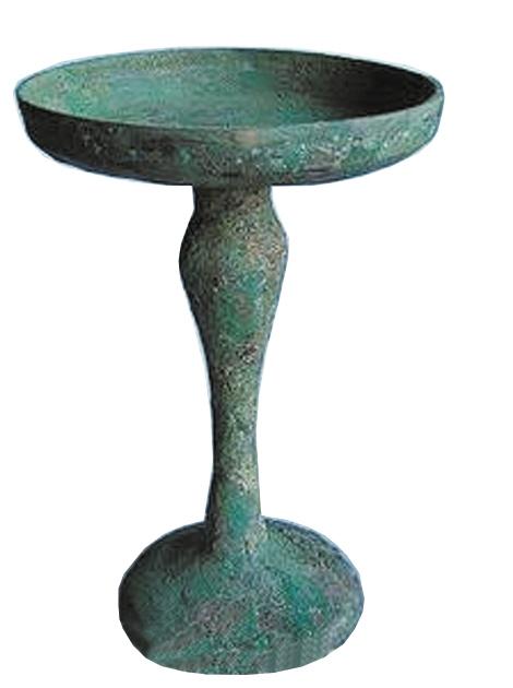 中國古代的照明工具,除掉最原始的火把,最早的是油燈而不是蠟燭,有關(guān)蠟燭的記載是漢代才有的。既然要用油燈,古人用什么器皿來盛放燈油和燈芯呢?人們找來找去,一種名叫“豆”的器皿脫穎而出。“豆”本為上古時代的一種盛食器,其上為圓盞盤,中間為或長或短的直柄,最下為喇叭或圓足形底座。簡單地說,“豆”的形狀就像高腳盤,一般用陶制,也有青銅或木制的,青銅制的用作祭祀禮器。“豆”的造型,完全符合人們對燈具的基本需求——既有能裝油和燈芯的淺淺的容器,又有方便移動的把手。于是,人們就在“豆”的基礎(chǔ)上稍加修改,用陶土燒制出了最初的高腳燈具。