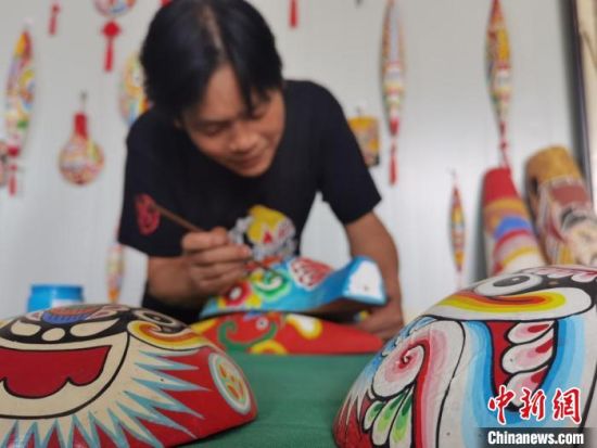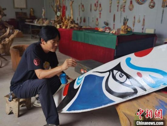 取材、挖空、刨光、勾線、著色……經(jīng)過(guò)這些步驟,一個(gè)馬勺臉譜就完成了。馬勺臉譜由中國(guó)民間社火臉譜演化而來(lái),已有數(shù)千年歷史,系列產(chǎn)品主要包括馬勺臉譜、梭子臉譜、鏟子臉譜、木锨臉譜等。9月初,甘肅省隴南市徽縣馬勺臉譜的省級(jí)傳承人馬龍,依舊在工作室創(chuàng)作。今年47歲的他,堅(jiān)守馬勺臉譜的制作技藝已有20余載,不僅傳承了社火臉譜和京劇臉譜的古韻,而且創(chuàng)新了貼金、刻繪等技藝,在傳統(tǒng)中融入了現(xiàn)代造型和色彩元素。它的作品在網(wǎng)絡(luò)引起熱議:“臉譜畫在梭子上,厲害了。”“寶藏非遺,期待下次打卡。”