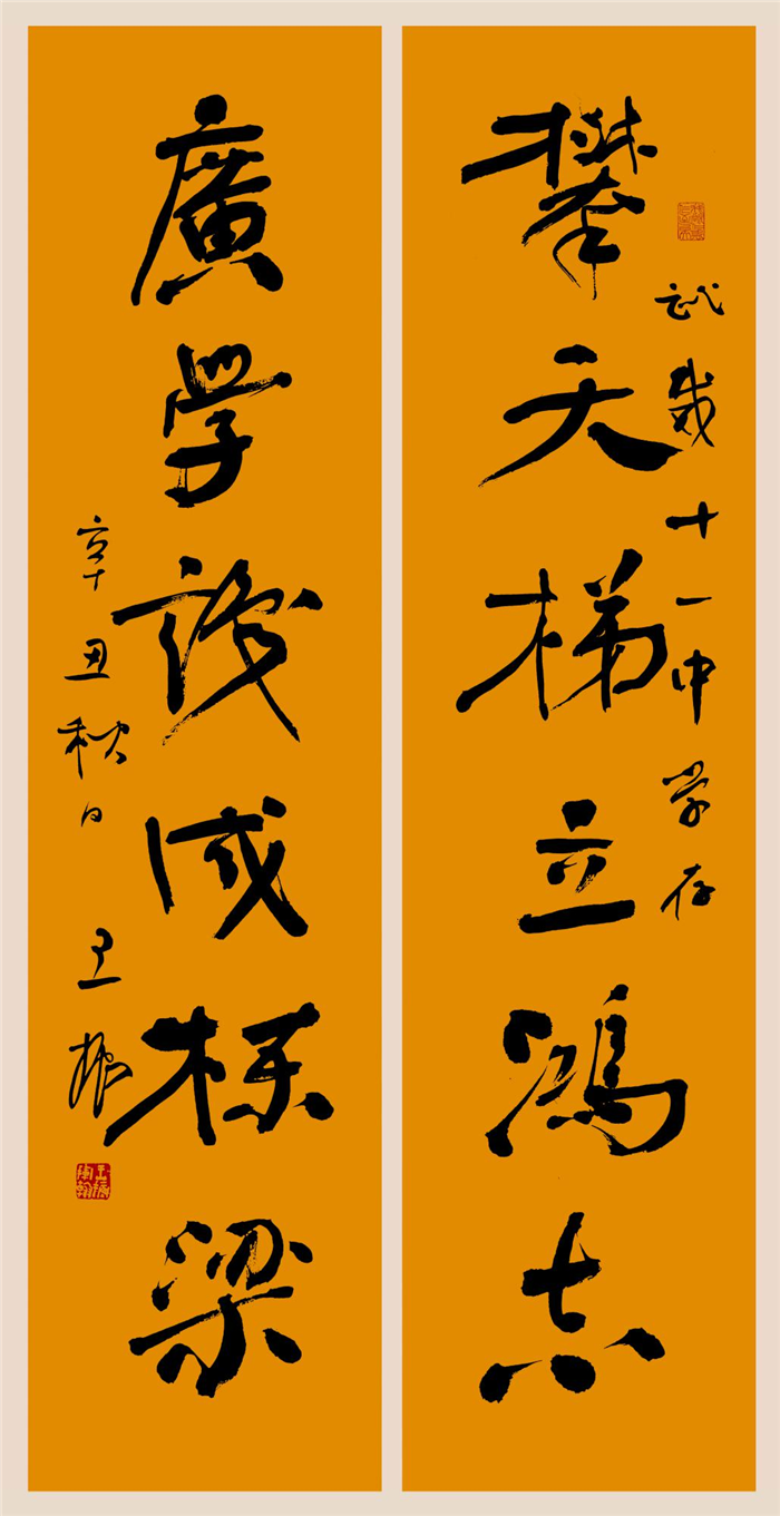 莫言擬聯、書法家王振撰寫作品:攀天梯立宏志,廣學識成棟梁