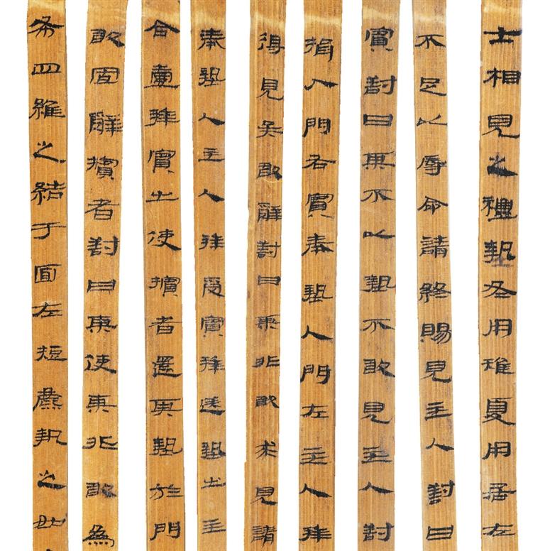 “禮儀出大家”?!秲x禮》確實(shí)是上層社會(huì)的各項(xiàng)禮儀準(zhǔn)則??墒牵瑐鞒形拿鞑⑹怪l(fā)揚(yáng)光大的不僅僅是貴族階層,普通的知識(shí)分子乃至社會(huì)的普通民眾更是文明的創(chuàng)造者和傳播者。就如《儀禮》簡上一行行端正秀麗的隸書,蠶頭燕尾、逆入平出,筆勢流暢,工整秀麗,簡直是書法界的奇珍異寶!而這筆端秀的漢隸不過出自一位名不見經(jīng)傳的讀書人之手而已。所謂,大家在民間!