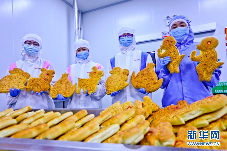 9月9日,甘肅省張掖市甘州區(qū)一月餅加工車間內(nèi),工作人員正忙碌制作中秋“土月餅”。新華網(wǎng)發(fā) (王將 攝)