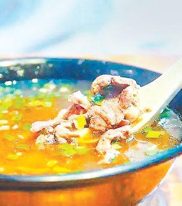 東門巷、喇家巷的牛雜割也上演著與肉酒一樣的故事,冬日里的牛雜割鋪?zhàn)涌偸切v騰的,在雜割湯翻滾的撲鼻中,一碗又一碗的雜割端上桌了。蒜苗與芫荽沫作為菜頭,讓一碗牛雜割青綠且香味撲鼻,拿了筷子,手心里一抹,而后咽一下口水,吸溜一口湯,目光跟著筷子在碗里攪動,留意牛舌多了一塊還是蹄筋少了,先巡察一番,然后咬一口白餅,喝口湯,幾口之后才吃雜割。