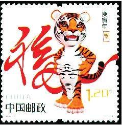 2010年1月5日發(fā)行第三輪生肖郵票第七套《庚寅年》特種郵票,全套1枚,由中央美術學院設計學院教授馬剛設計。設計者利用三維造型的特點采用擬人化的造型手法,勾勒出一只氣宇軒昂、活潑動人的卡通虎形象。