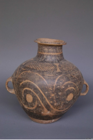 (漩渦紋彩陶雙耳罐)