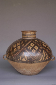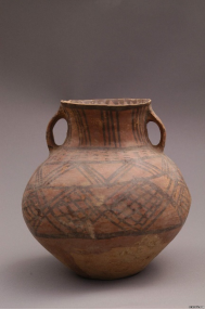 (菱格紋彩陶雙耳罐)