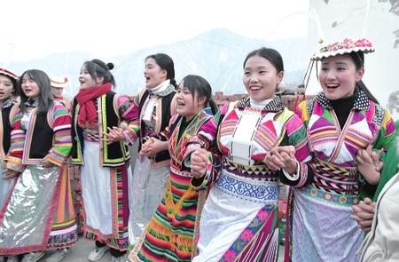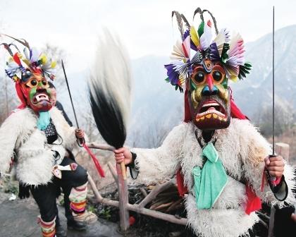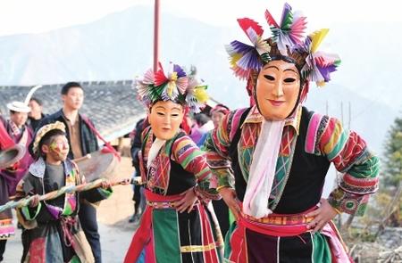 文縣鐵樓鄉(xiāng)麥貢山村,當(dāng)?shù)鼐幼〉臇|亞最古老部族白馬藏族用自己獨(dú)特的民俗——跳“池哥晝”,歡度元宵佳節(jié)。
