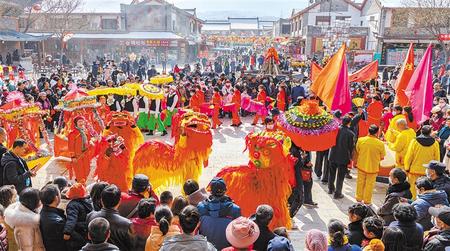 崆峒古鎮(zhèn)鑼鼓震天、彩綢飛舞,耍獅舞龍,演出人員身穿鮮艷亮麗的服飾,伴隨著鏗鏘歡快的鼓點,為古鎮(zhèn)商戶和游客送來了虎年的祝福;民樂縣城北民俗文化村內(nèi),高臺舞獅,獅頭擺、追繡球、飆起來,慶新春迎元宵文化惠民社火匯演活動拉開帷幕;永靖縣6個鄉(xiāng)鎮(zhèn)的8支社火隊進縣城表演,精彩的社火展演將濃濃的新春氛圍推向高潮,也給廣大城鄉(xiāng)群眾獻上了一道豐盛的精神文化大餐……