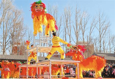 民樂縣高臺舞獅展雄風。新甘肅·甘肅日報通訊員 王 將