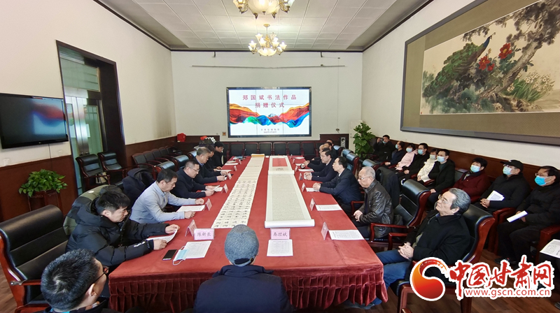 中國甘肅網(wǎng)2月22日訊(本網(wǎng)記者 任磊 楊顏如)22日上午,鄭國斌書法作品捐贈(zèng)儀式在甘肅省博物館舉行,鄭國斌先生向省博物館捐贈(zèng)了近20年來創(chuàng)作的10件書法精品。