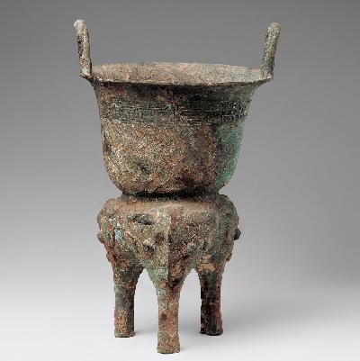 侈口,細腰三款足,腰設活箅,口沿飾獸紋,足飾牛面紋。腹內壁鑄有“勻”銘文。