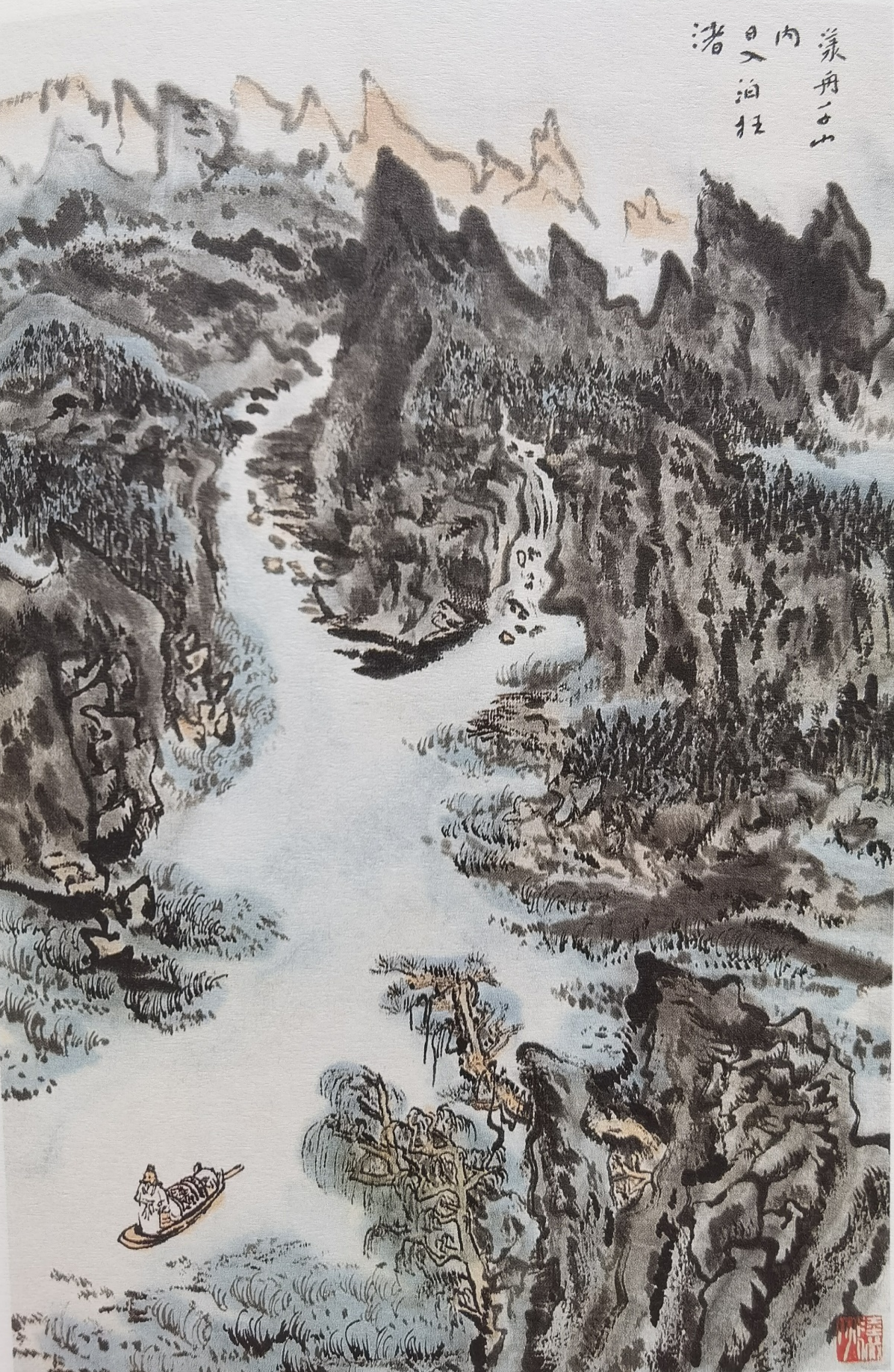 圖:陸儼少《杜甫詩意圖冊》之《漾舟千山內,日入泊枉渚》