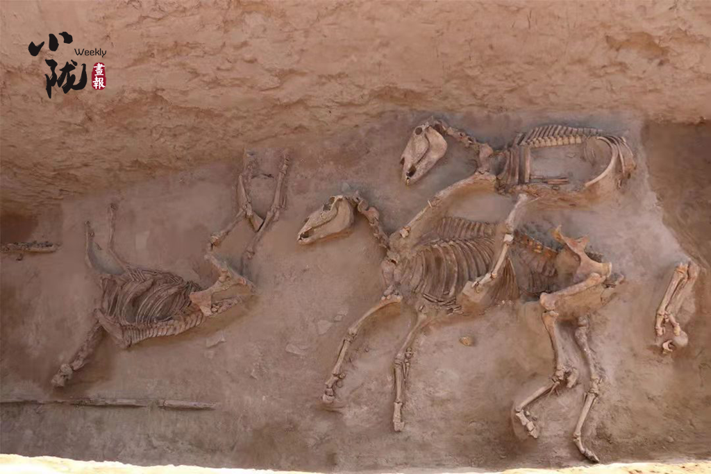 墓道內(nèi)均有整馬殉葬,1-3匹不等,亦見有燒殉的羊骨、牛骨等。墓室內(nèi)出土有漆、木、陶、石、革及各類金屬器等隨葬品290余件,以殘漆木器居多,部分漆木器上有彩繪,并貼有金、銀箔,做工精美,裝飾華麗。