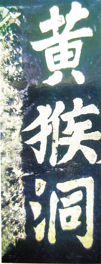 石刻為長方形,上邊深0.1米,其他三邊深約0.05米,長0.87米,寬0.4米,中間豎書“黃猴洞”三字,陰文,各有0.23米-0.29米大小?!队苤锌h志》記載石刻內容為:“齊獲睹經略少保恩公墨跡,俾工刻石,以傳不朽”,落款為“政和戊戌六月十五,門生修武郎權知蘭州龕谷寨向齊上石”,石刻簡約記述了“黃猴洞”三字的來歷,是出自北宋政和八年(1118年),龕谷知寨向齊讓工匠將其師題字刻鐫于此。