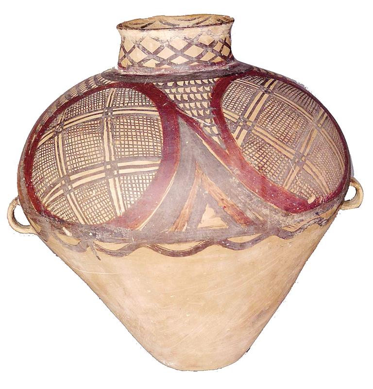 姓名:馬家窯文化半山類型四大圓圈雙耳彩陶罐 出生年代:距今約4650—4350年左右 住址:永靖縣博物館 體型:高46.6厘米,口徑15.6厘米,底徑12.2厘米 自我描述: 我是半山類型中的精品,屬于國家一級文物。泥質(zhì)紅陶,口沿微侈,直粗頸,闊肩,鼓腹,平底,腹有對稱雙耳,施黑紅彩,內(nèi)口飾水波紋六組,外口飾網(wǎng)紋,肩腹飾四大圓圈旋渦紋,間飾弧線鋸齒紋,腹中部飾寬帶紋,水波紋各一條,器型個(gè)體較大,胎體光滑,紋飾精致,色彩鮮艷。