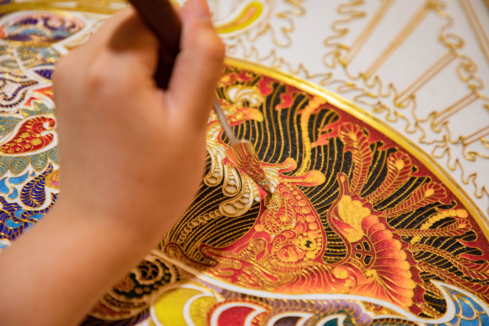 此后30多年,李海明不斷傳承創(chuàng)新,將排絲、壘絲、螺旋絲、柱狀絲等鑲嵌技法引入掐絲琺瑯?biāo)囆g(shù),利用100多種基礎(chǔ)琺瑯釉料調(diào)制出4000多種過(guò)渡色及配色,攻克了琺瑯壁畫(huà)釉料脫落的難題,提升了琺瑯壁畫(huà)作品的藝術(shù)價(jià)值和收藏價(jià)值。截至目前,他共創(chuàng)作2000多幅掐絲琺瑯壁畫(huà)作品,先后30多次獲國(guó)家級(jí)和省級(jí)工藝美術(shù)類(lèi)大賽金獎(jiǎng),部分作品被國(guó)家博物館收藏。