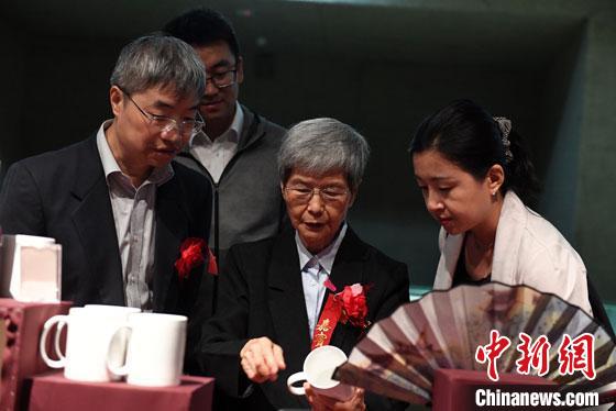2018年8月,樊錦詩(中)在莫高窟數(shù)字陳列中心參觀文創(chuàng)產(chǎn)品。(資料圖) 楊艷敏 攝