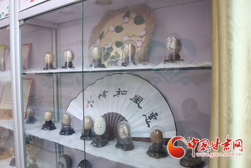 自2018年開始,蘭州新區(qū)新安社區(qū)為劉財(cái)萬(wàn)的蛋雕作品專設(shè)了社區(qū)展柜,劉財(cái)萬(wàn)可以為前來(lái)參觀的人們講解作品內(nèi)涵、展示創(chuàng)作過(guò)程。對(duì)劉財(cái)萬(wàn)來(lái)說(shuō),這不但可以更好傳播蛋雕文化,也是分享自己生命體悟、生活方式的一個(gè)出口。