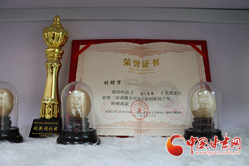 記者在采訪中注意到,社區(qū)的展柜一角擺放著不少獲獎(jiǎng)證書,其中一張是在2021年的全國(guó)蛋雕專項(xiàng)展上,為劉財(cái)萬(wàn)作品《偉人肖像》頒發(fā)的創(chuàng)新設(shè)計(jì)獎(jiǎng)證書。“目前正在為全國(guó)蛋雕藝術(shù)聯(lián)展作準(zhǔn)備”,當(dāng)記者問(wèn)起下一步打算時(shí),劉財(cái)萬(wàn)顯得信心十足。