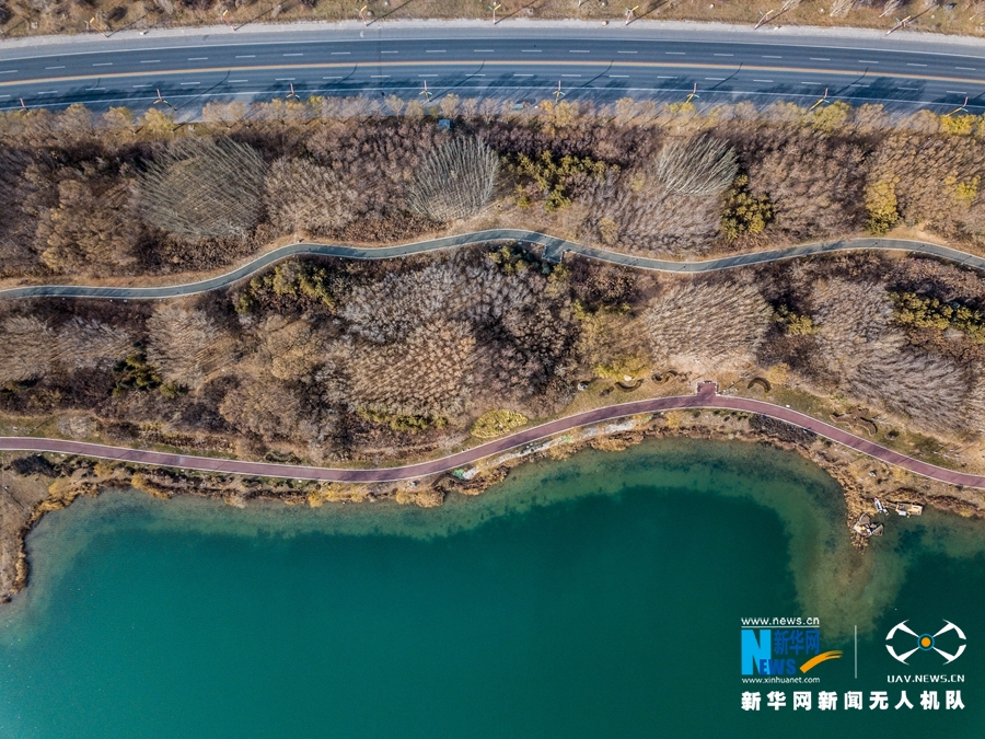 這是11月21日拍攝的甘肅省張掖市甘州區(qū)蘆水灣風光(無人機拍攝)。新華網(wǎng)發(fā) (成學磊 攝)