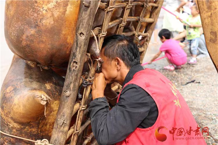 “九曲黃河十八彎,筏子起身闖河關(guān)。”羊皮筏子,舊稱(chēng)“革船”,是黃河特有的風(fēng)景和古老的運(yùn)輸工具。蘭州羊皮筏子距今已有300多年歷史,作為河道上的短途運(yùn)輸工具,除了擺運(yùn)渡河商旅和兩岸百姓外,還用于商貿(mào)販運(yùn)。