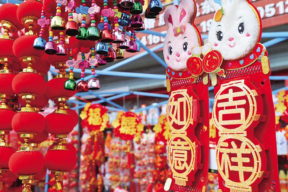 原標題:“兔元素”走俏年貨市場 濃濃年味撲面來