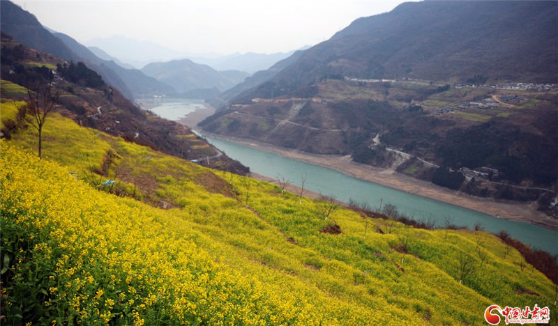 隨著天氣轉(zhuǎn)暖,文縣白水江沿岸油菜花次第開放,處處充滿著勃勃生機。