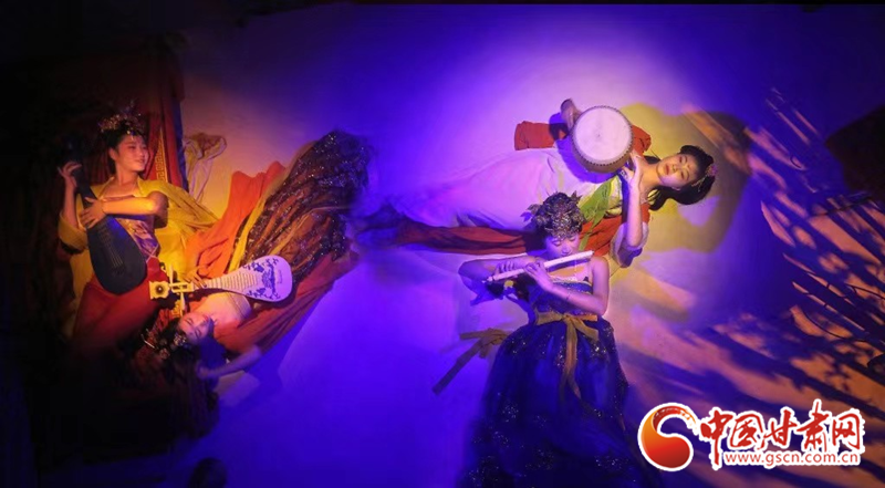 第二表演區(qū)中觀眾將親眼目睹王圓箓送出國(guó)寶時(shí)的那一幕“心酸”。并在不知覺(jué)中被分成十六組進(jìn)入不同的 “洞窟”,與不同時(shí)代古人“對(duì)談”。行五十步穿越百年,再行百步穿越千年。