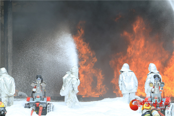 現(xiàn)場,爆炸聲浪一波未平,一波又起,黑煙滾滾夾雜火苗亂竄。在嚴(yán)峻考驗面前,消防隊伍采用先進(jìn)技術(shù)壓制火力,發(fā)起總攻。最大程度模擬真實(shí)火災(zāi)場景,達(dá)到應(yīng)對復(fù)雜火災(zāi)考驗的能力。