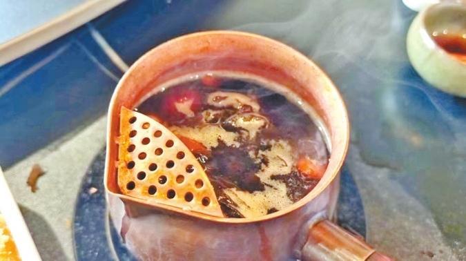 “‘茶圣’陸羽的《茶經(jīng)·五之煮》記載,煮茶的時(shí)候會(huì)放蔥、姜、棗、橘皮、茱萸、薄荷等佐料,所以現(xiàn)在罐罐茶所添加的配料,如紅棗、枸杞、桂圓、葡萄干、菊花、冰糖等,其實(shí)就是最原始的煮茶法的延續(xù)。”唐陳虓說。
