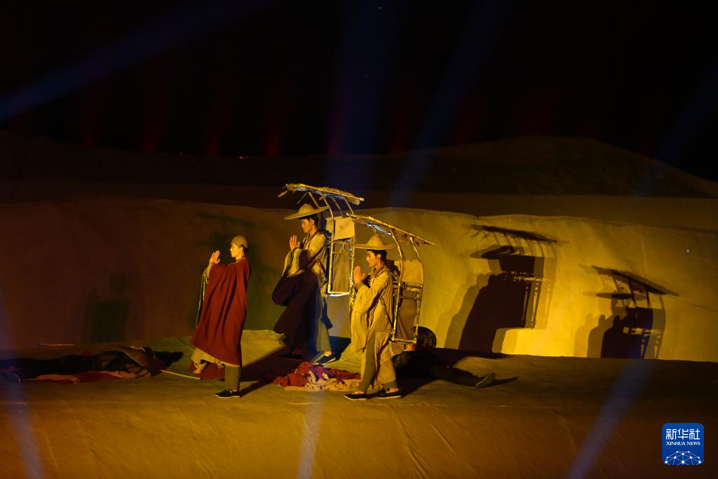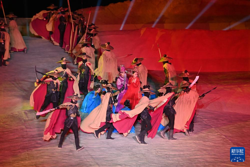 今年以來,脫胎于敦煌文化的洞窟沉浸式體驗劇《樂動敦煌》、室內情景體驗劇《又見敦煌》、沙漠實景演出《敦煌盛典》和中國殘疾人藝術團情景音畫劇《千手千眼》四場劇目在絲路名城甘肅敦煌同步上演,劇目將敦煌歷史底蘊、服飾文化、樂舞文化等生動融合,為游客呈現出精彩絕倫的敦煌文化視覺盛宴,深受中外游客喜愛。截至8月10日,四大劇目今年已累計演出1175場次,觀看游客突破66萬人次。其中,《敦煌盛典》以敦煌鳴沙山月牙泉為背景,將沙漠景觀與現代舞美結合,將墻體燈光融入實景演出,講述了一段發(fā)生在古絲綢之路重鎮(zhèn)敦煌的愛情故事,展示了敦煌的歷史文化及人文風貌。