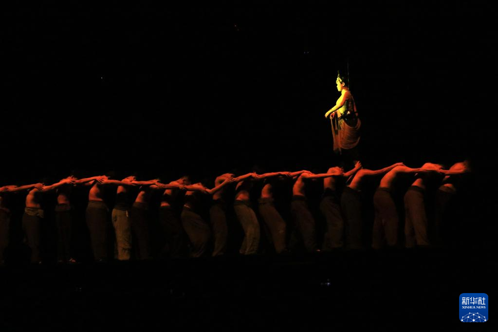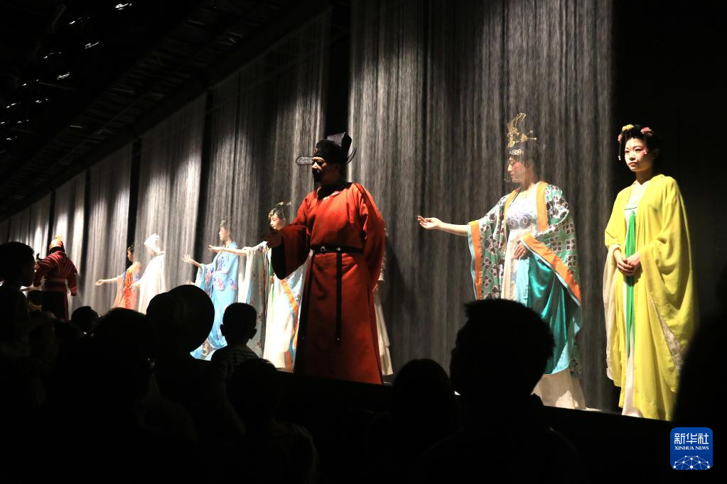 8月9日,演員在《又見(jiàn)敦煌》中表演。新華社發(fā)(張曉亮 攝)
