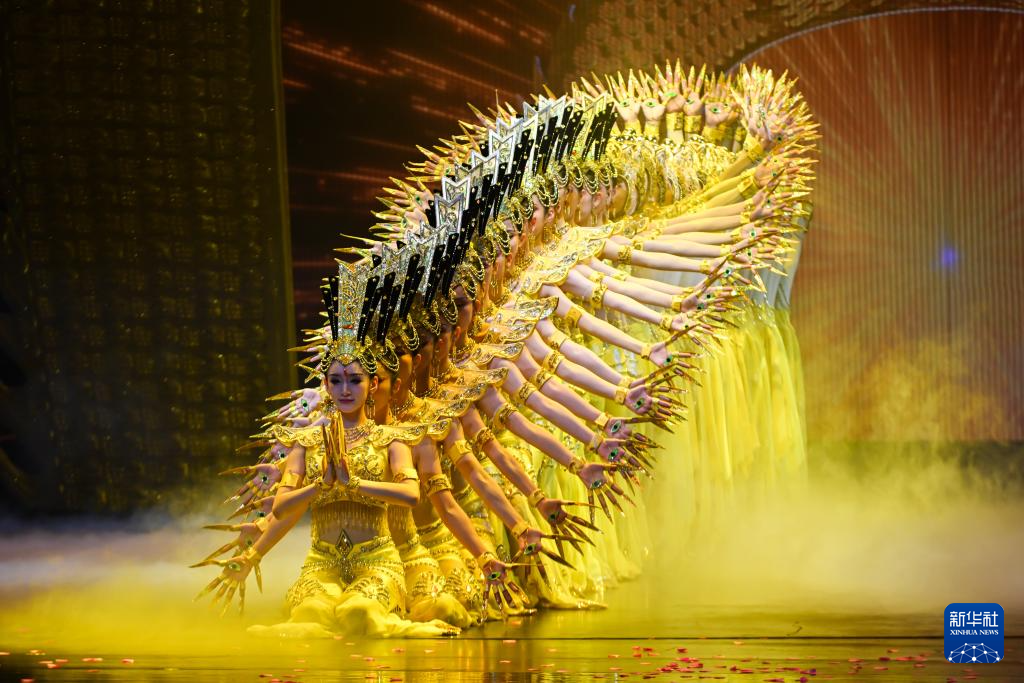 今年以來,脫胎于敦煌文化的洞窟沉浸式體驗劇《樂動敦煌》、室內(nèi)情景體驗劇《又見敦煌》、沙漠實景演出《敦煌盛典》和中國殘疾人藝術(shù)團情景音畫劇《千手千眼》四場劇目在絲路名城甘肅敦煌同步上演,劇目將敦煌歷史底蘊、服飾文化、樂舞文化等生動融合,為游客呈現(xiàn)出精彩絕倫的敦煌文化視覺盛宴,深受中外游客喜愛。截至8月10日,四大劇目今年已累計演出1175場次,觀看游客突破66萬人次。其中,《千手千眼》以中國殘疾人藝術(shù)團音樂舞蹈詩《我的夢》為藍本,融合莫高窟第3窟等敦煌壁畫元素創(chuàng)編而成,50名聽障或視障演員通過音樂、舞蹈和多媒體等形式創(chuàng)新講述了“妙善救父”的民間故事,是特殊藝術(shù)與敦煌文化的融合。