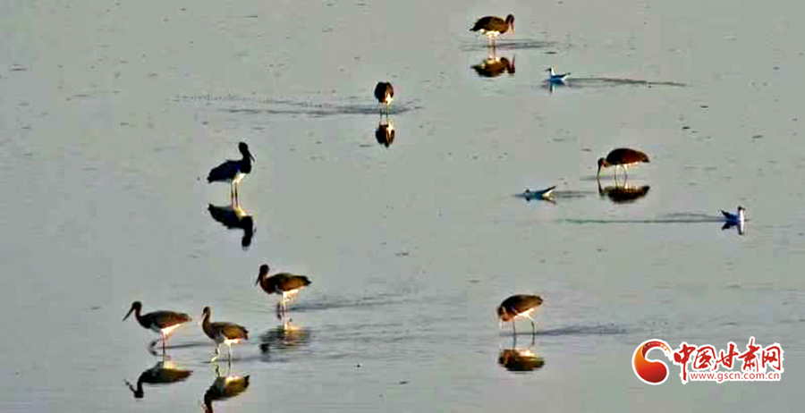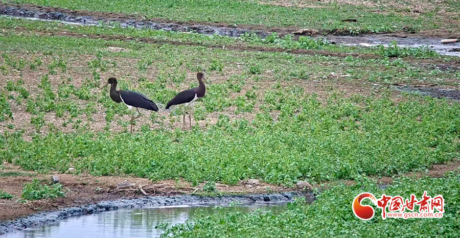 近日,山丹縣濕地保護(hù)站工作人員在開(kāi)展候鳥(niǎo)監(jiān)測(cè)工作時(shí)發(fā)現(xiàn)14只被稱為“鳥(niǎo)中大熊貓”的黑鸛。