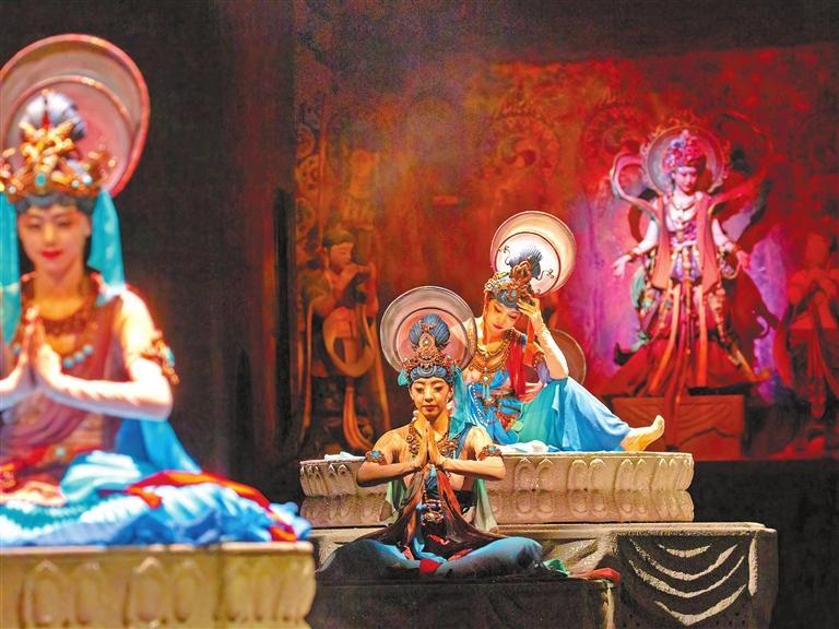 敦煌,這座取之不盡用之不竭的藝術(shù)富礦,這一“頂流”的文化IP,已成為我省旅游演藝創(chuàng)作的發(fā)端。廣大文藝工作者深入挖掘敦煌文化,不斷豐富敦煌旅游演藝市場(chǎng),以藝術(shù)的形式展示“一帶一路”開放、包容、合作、共贏的精神,在創(chuàng)新傳承中展現(xiàn)文化自信。