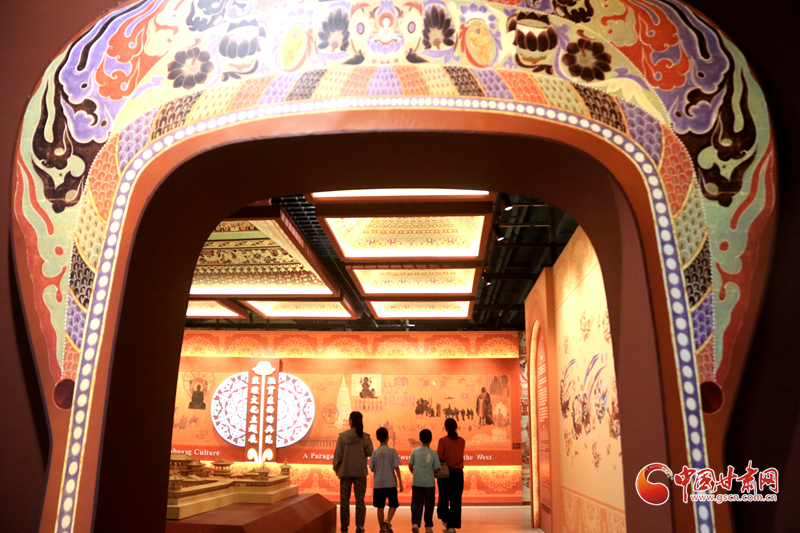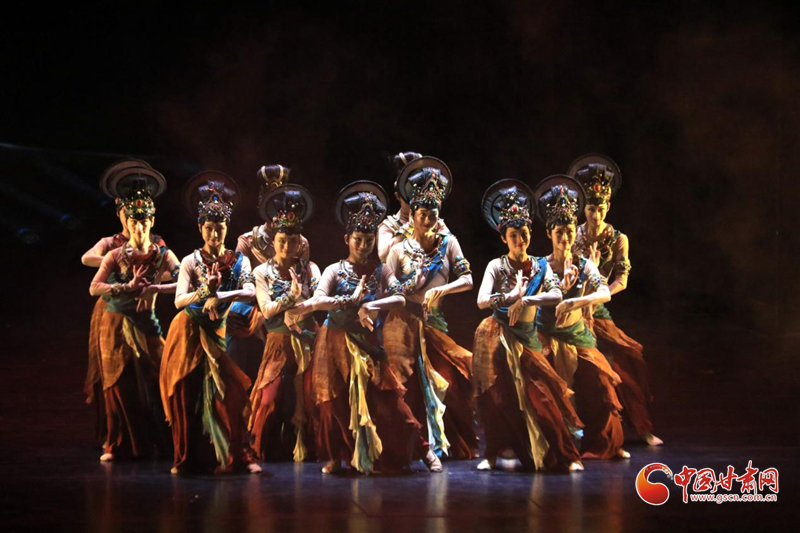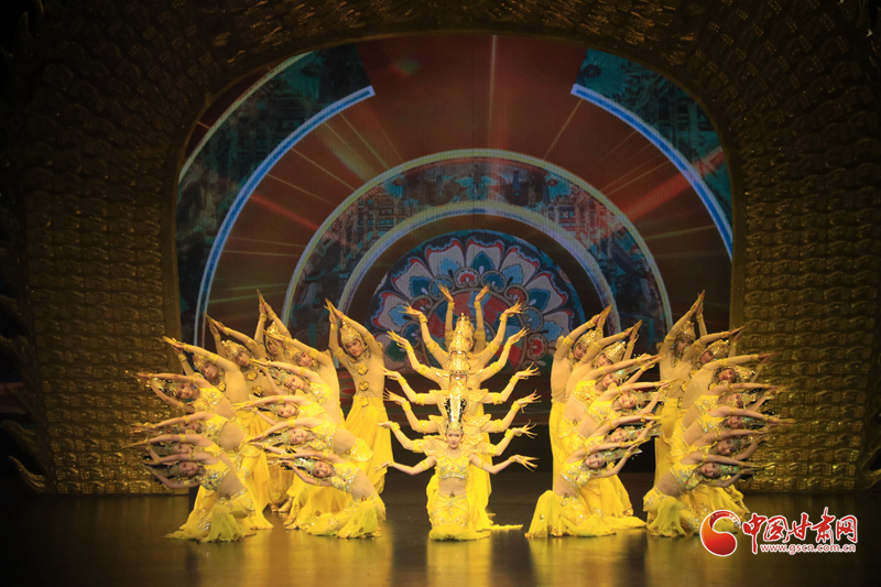 9月10日晚,在甘肅敦煌大劇院,演員在大型情景音畫劇《千手千眼》中表演。