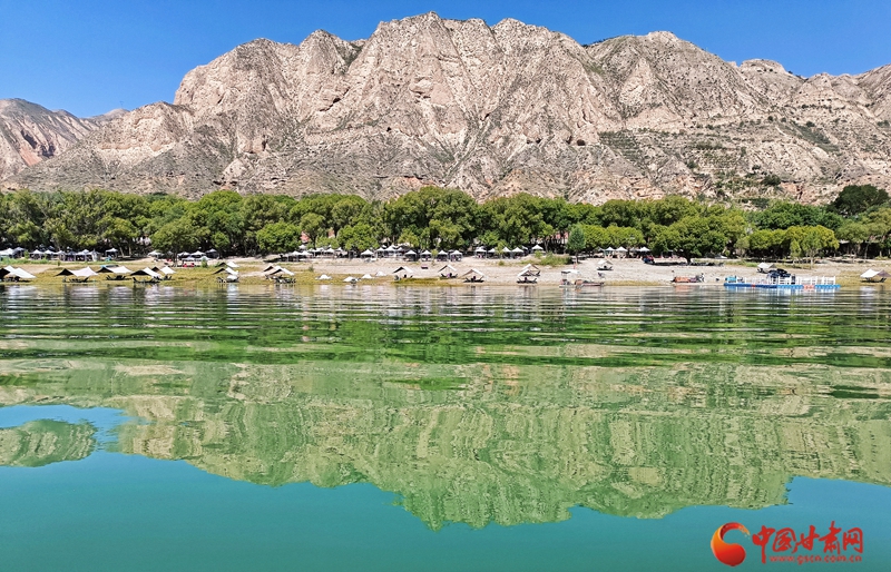 永靖縣太極島濕地,黃河在這拐了個彎,大河向西奔流,丹霞地貌與清澈河水相映如畫。站在畫舫上,河流所經(jīng)之處,兩岸芳草萋萋,洲頭綠茵沉碧,形似八卦陣圖,因此得名太極島。