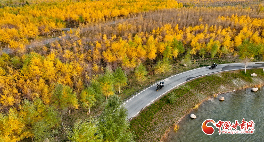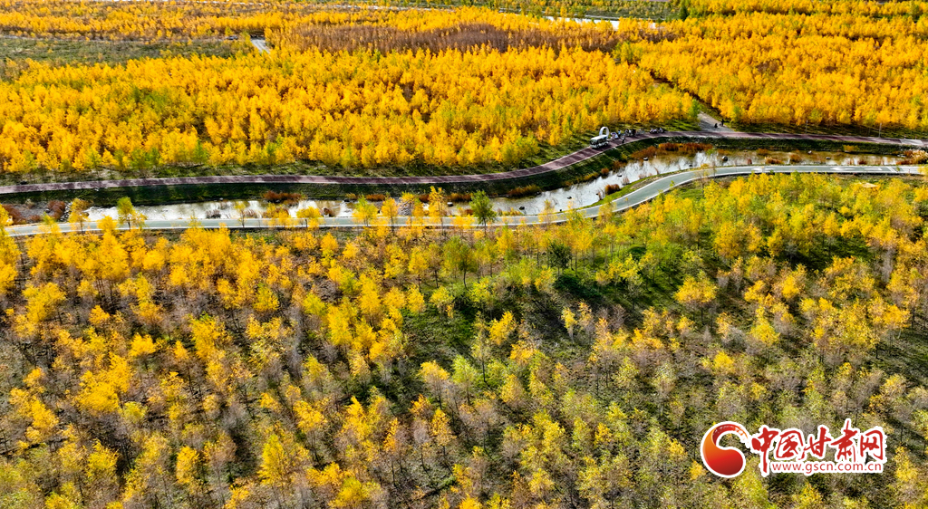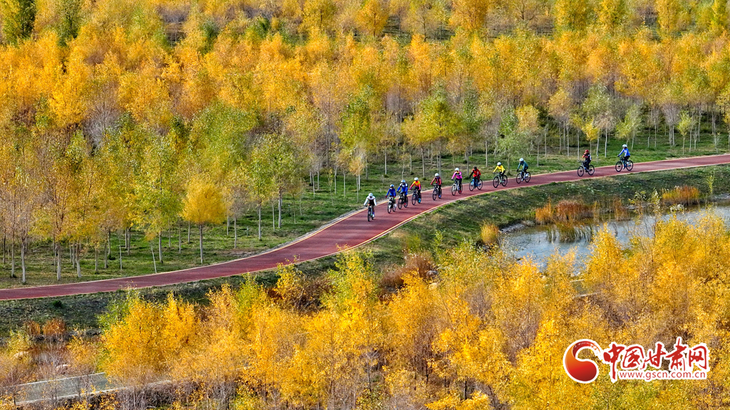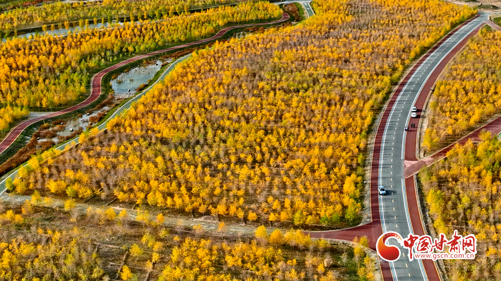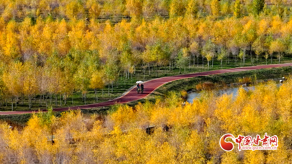 10月16日,甘肅省張掖奧林匹克森林公園萬畝人工胡楊林景區(qū)內,層林盡染、碧水環(huán)流,成為游客和市民欣賞美景和健魄身心的好去處。