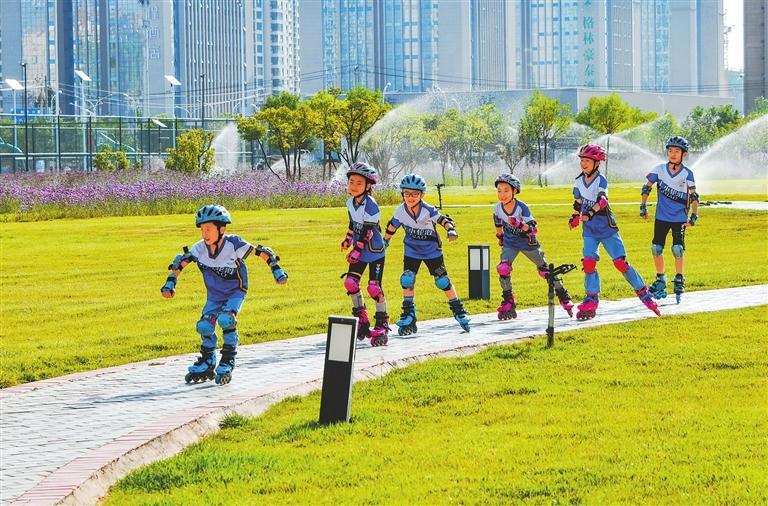 張掖奧林匹克森林公園成為市民健身休閑的好去處。新甘肅·甘肅日報通訊員 王將