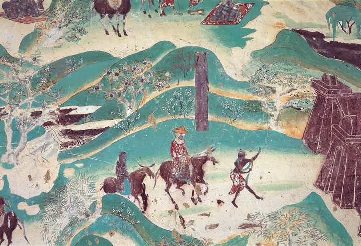 莫高窟第217窟-南壁西側(cè)-春山踏青-盛唐。(敦煌研究院供圖)