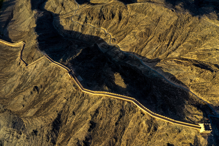 位于甘肅省嘉峪關(guān)市的懸壁長城(2023年7月15日攝)。新華每日電訊記者 方欣 攝