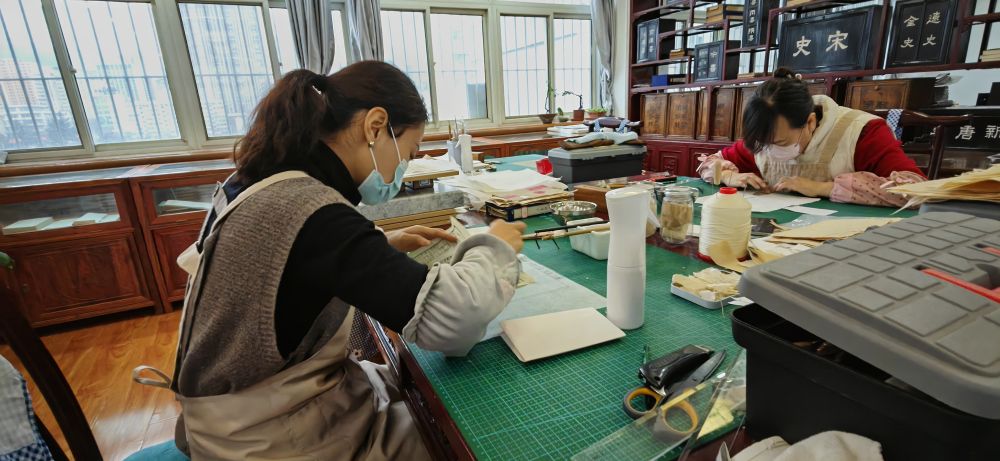姚嘉迪和同事們正在修復古籍。新華社記者 文靜 攝