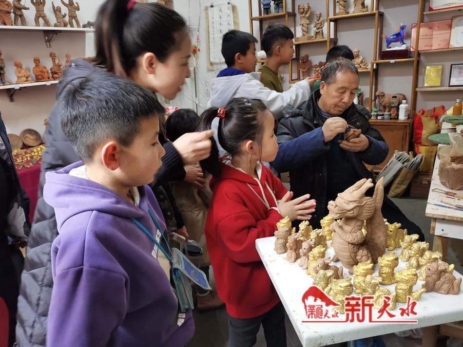 農(nóng)歷正月初四,記者在充溢著濃濃年味的西關(guān)古城“天水趙氏泥人”工作室見(jiàn)到趙旭輝時(shí),他正忙著一邊給前來(lái)體驗(yàn)的孩子指導(dǎo)捏泥技巧,一邊手里忙著在捏一塊泥巴。伴著泥土的清香,只見(jiàn)不多時(shí),通過(guò)捏、塑、搓、揉、摁等技法,那塊普通的泥巴便已經(jīng)在他手中鮮活起來(lái),且初具“龍”的雛形。
