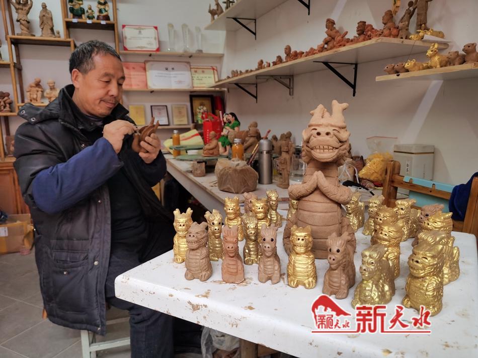 趙旭輝告訴記者,每年春節(jié)他都會(huì)創(chuàng)作一些生肖元素的泥塑作品,希望用傳統(tǒng)藝術(shù)表達(dá)對(duì)新春的美好愿景。今年也不例外,他依舊創(chuàng)作了一些以龍為主題的泥塑作品。